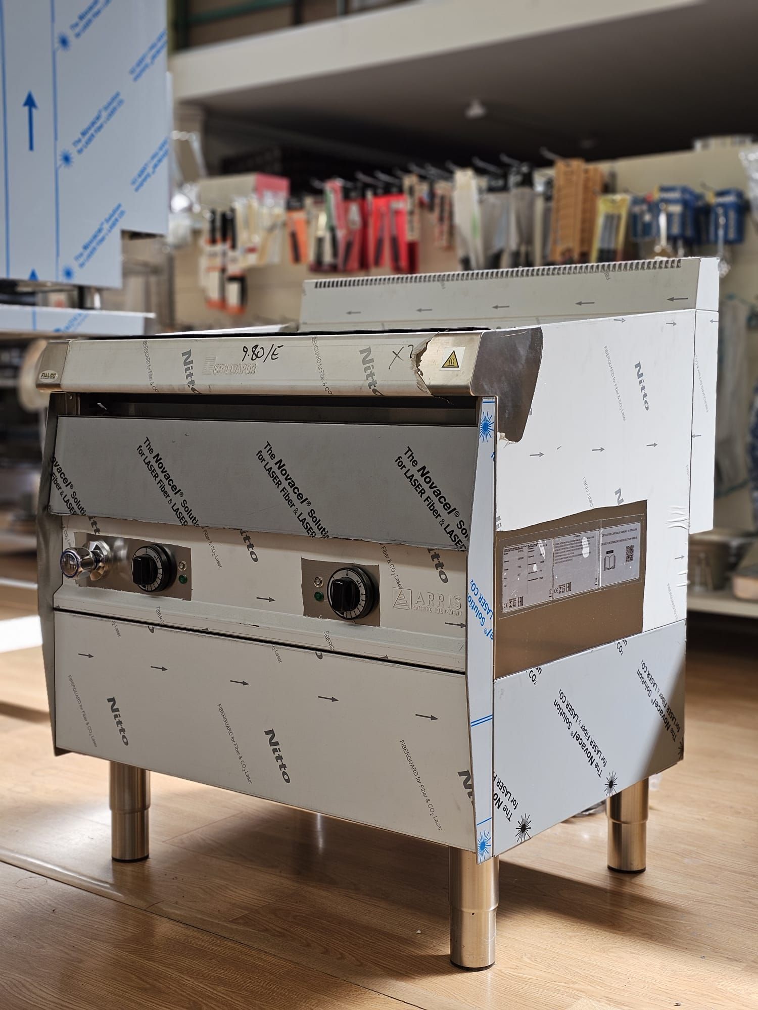 Griglia di cottura elettrica su mobile realizzata in acciaio inox AISI 304.
